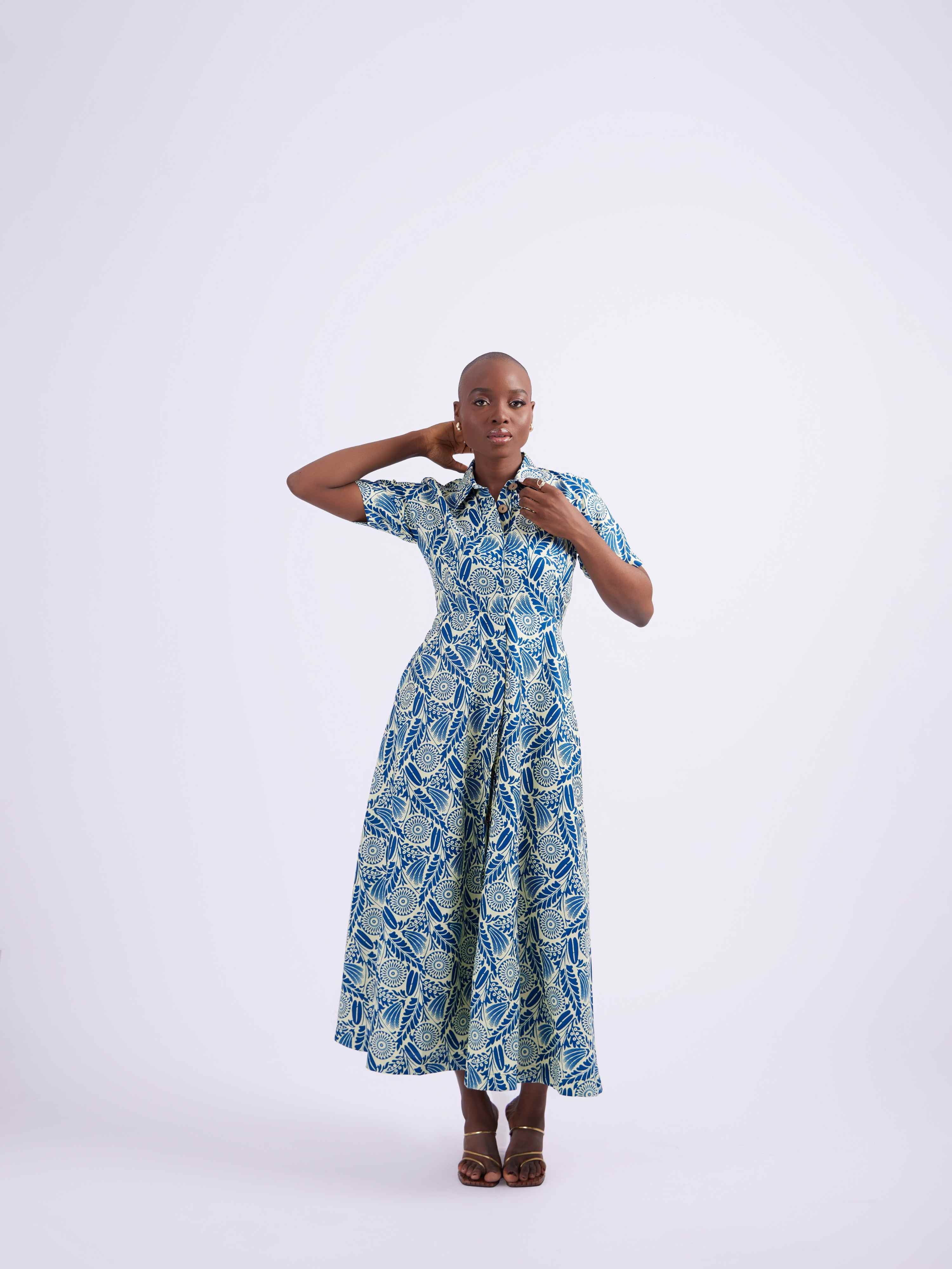 Refresh availabilityThis dress is a testament to our artisans in Nigeria who have meticulously handcrafted fabric sourced from Lagos markets into a garment that transcends fashion and becomes an expression of individuality and a force for good.